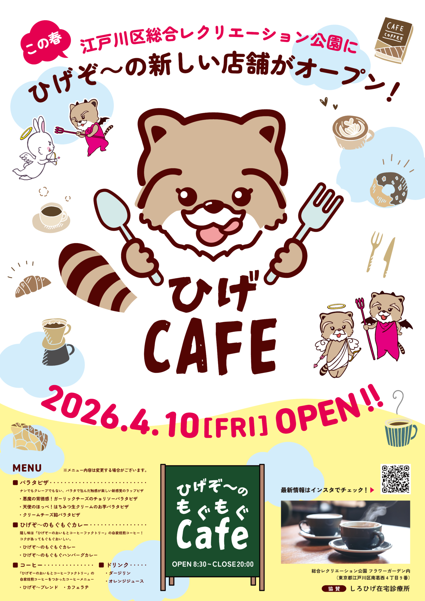 ■フラワーガーデン ひげぞ~のもぐもぐcafe 2026年4月10日オープン
