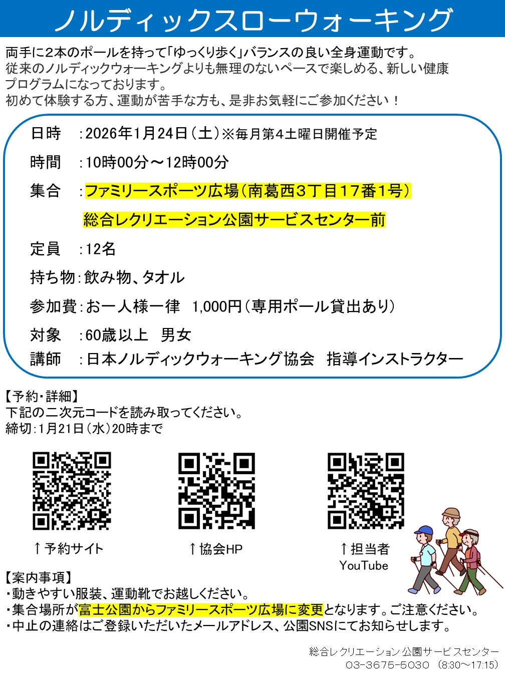 1/24(土)ノルディックスローウォーキング開催のお知らせ