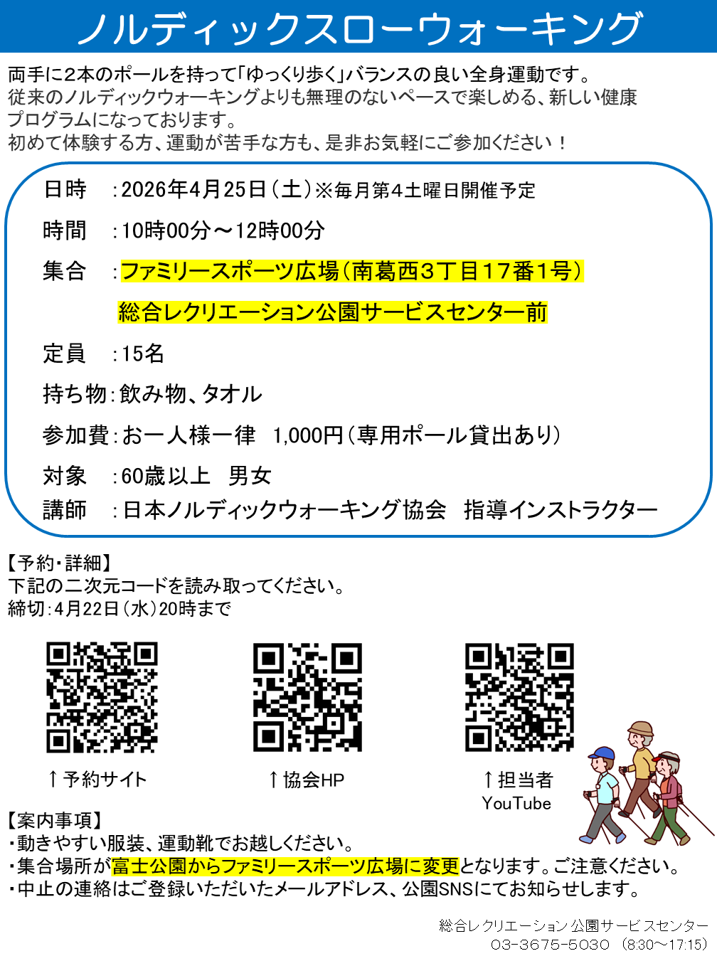 2026年4月25日(土)に「ノルディックスローウォーキング」を開催いたします。