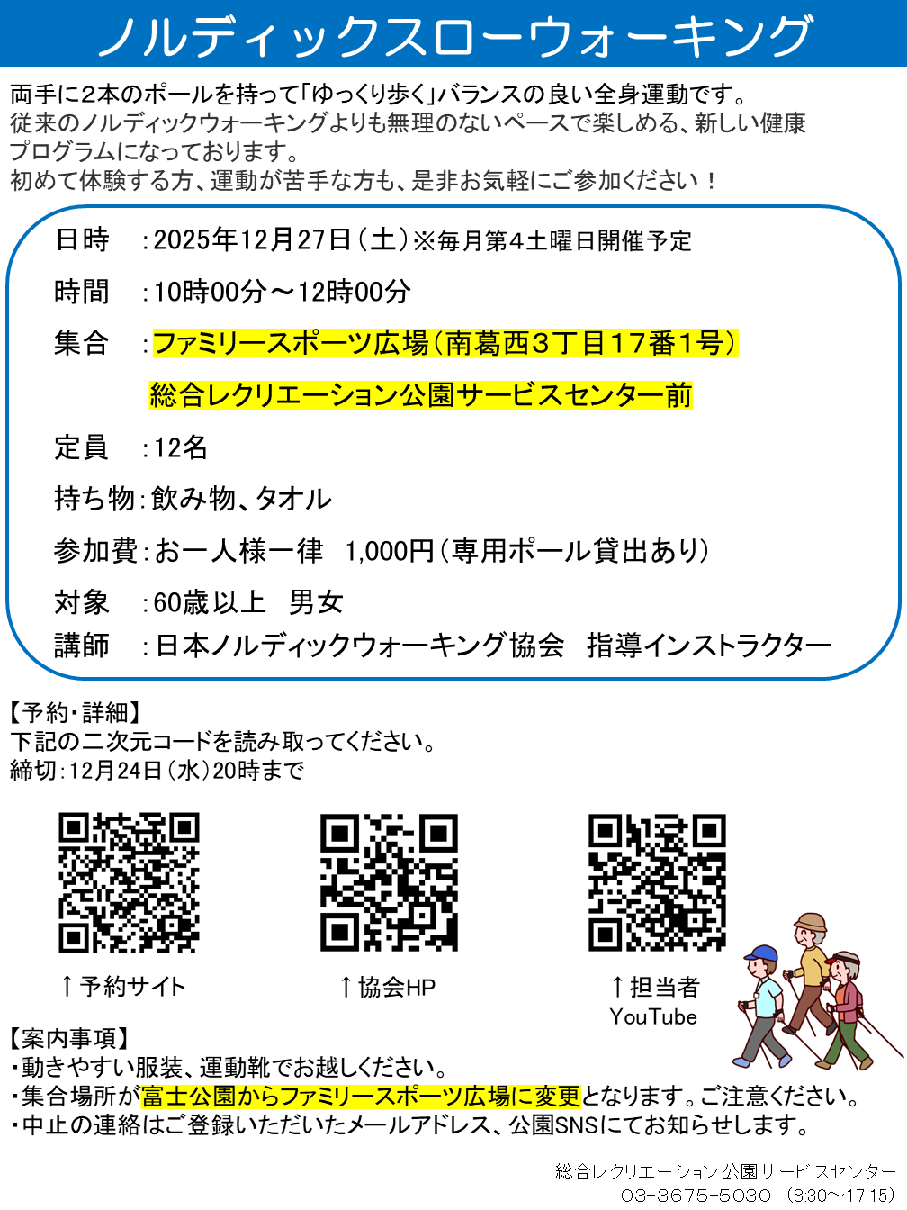12/27(土)ノルディックスローウォーキング開催のお知らせ
