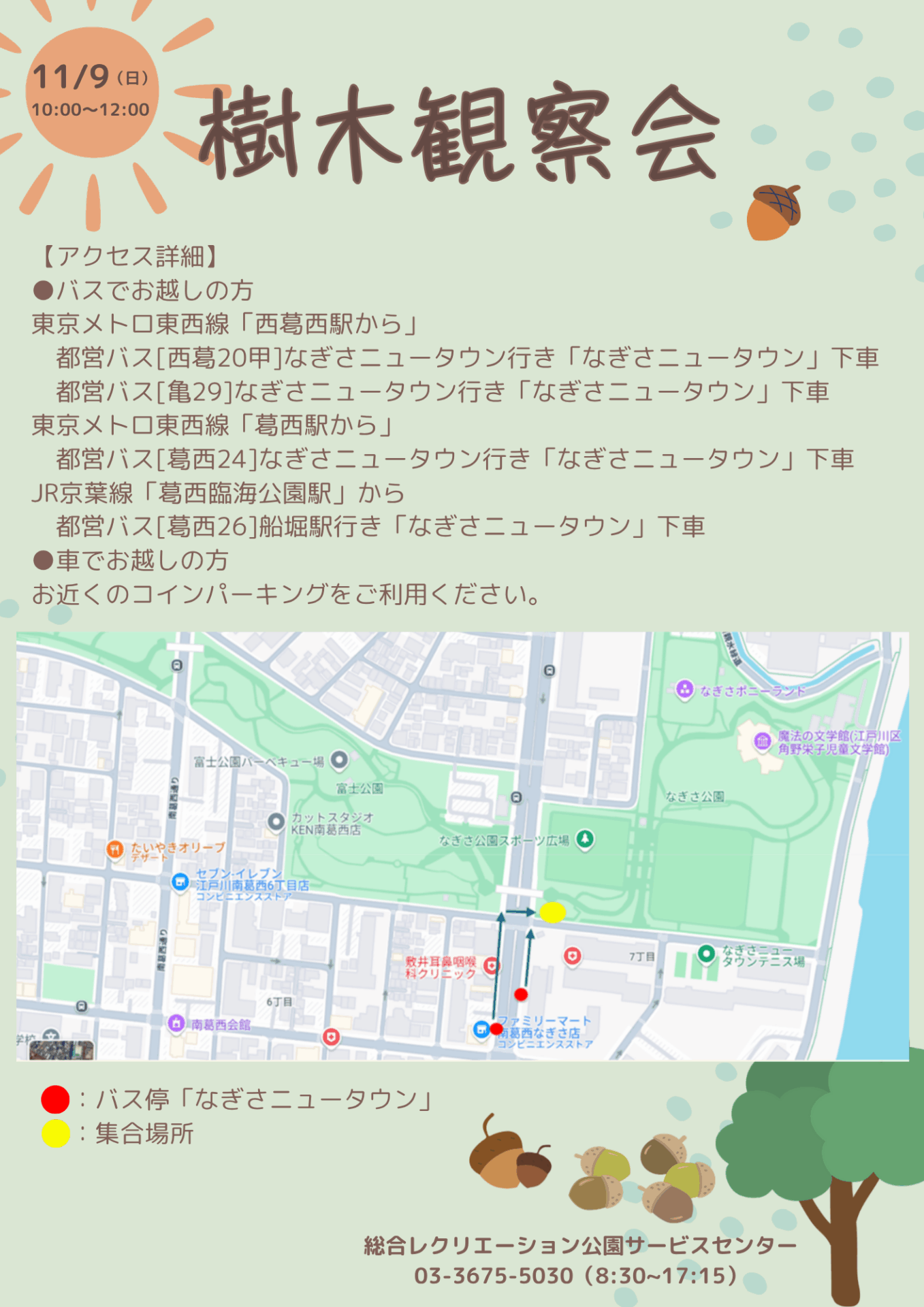 集合:なぎさ公園掲示板前(南葛西7丁目3番)