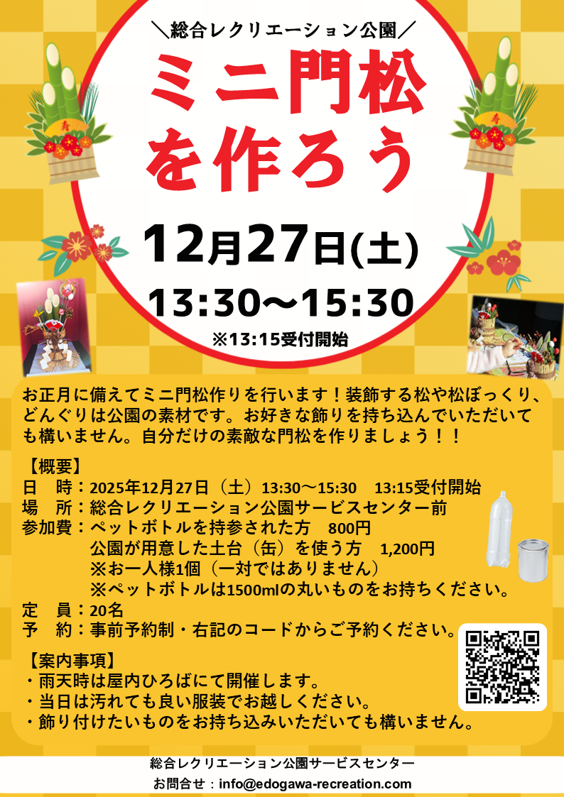 12/27(土)「ミニ門松を作ろう!」開催のお知らせ