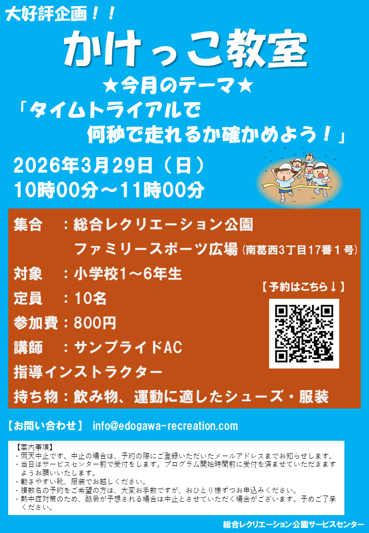 お子様の足を速くしたい、楽しく体を動かしたい方、専門のコーチが教える当イベントで、走るコツや姿勢、楽しみながら体力アップを目指しましょう♪